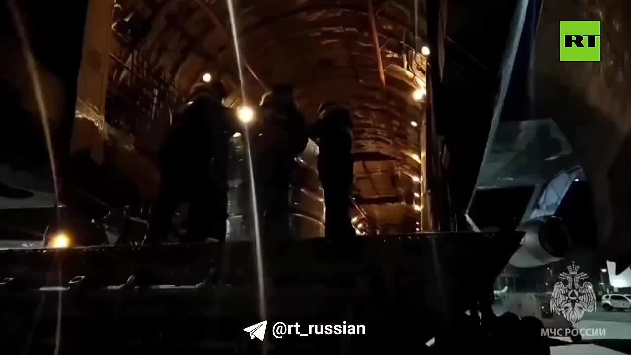 Ил-76 прибыл по указу Путина, на его борту в том числе бутилированная вода, бензопилы и теплопушки.