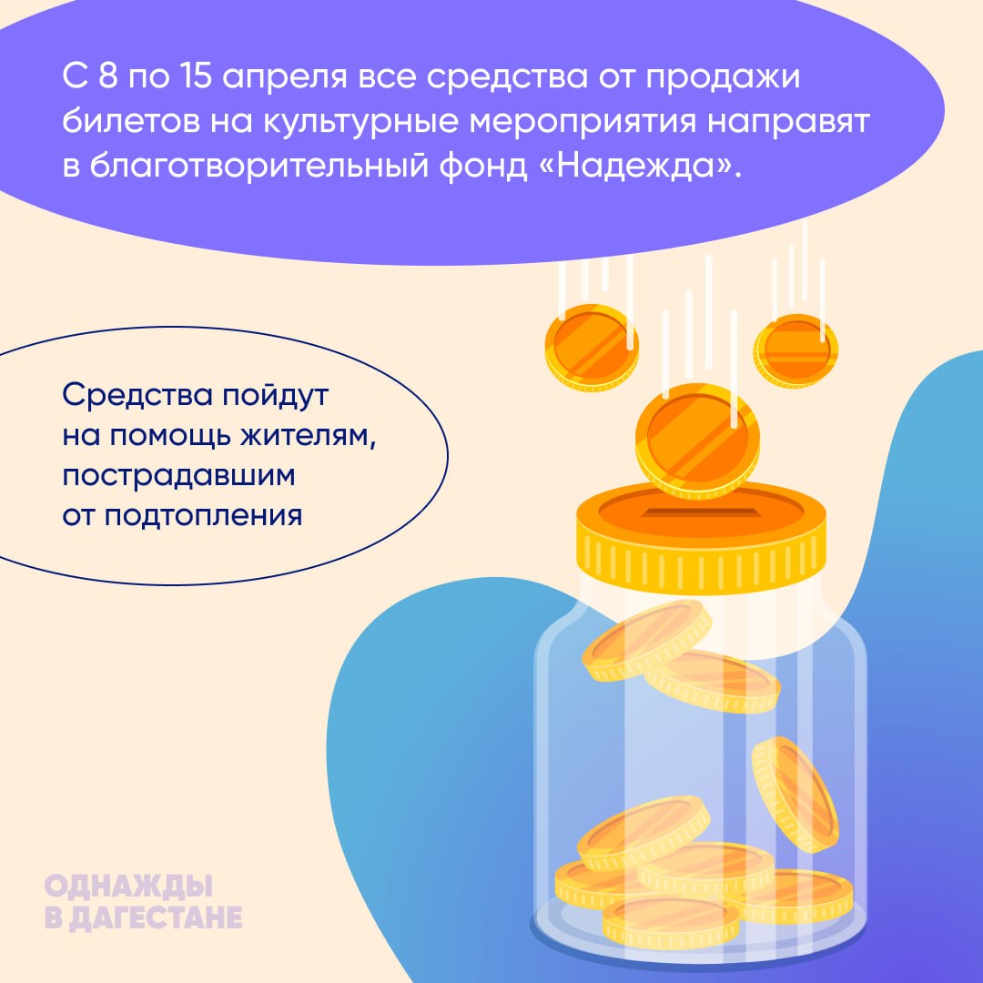 С 8 по 15 апреля все средства, вырученные от продажи билетов на культурные мероприятия, будут направлены в благотворительный фонд «Надежда».