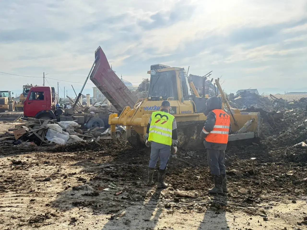 Бульдозеры, самосвалы и погрузчики работают в тех районах, где образовались крупногабаритные завалы, с которыми волонтеры не могут справиться вручную. С территории вывозится весь мусор.