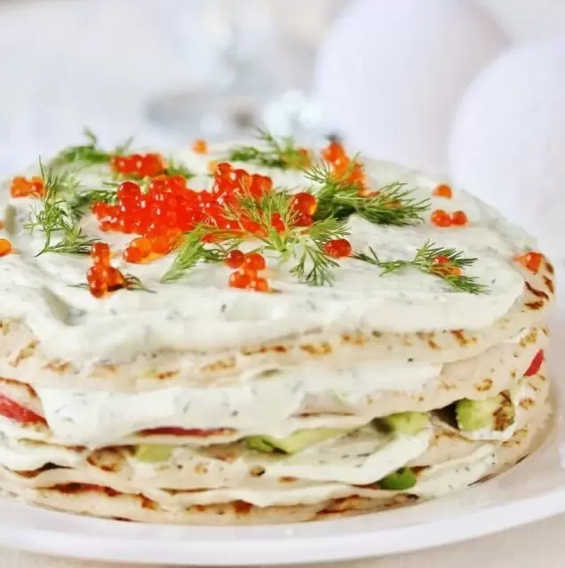 Погрузитесь в мир гастрономических удовольствий с новым кулинарным рецептом, который не оставит равнодушными ни друзей, ни семью. Блинный торт, украшенный нежной красной рыбой, сочным авокадо и изысканной икрой, станет настоящим украшением любого застолья.