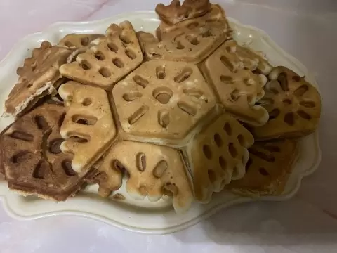 Полученное тесто выкладывается в предварительно разогретую форму, что позволит достичь равномерного пропекания. Затем форма плотно закрывается, и печенье готовится всего по минуте с каждой стороны, становясь золотистым и пышным.