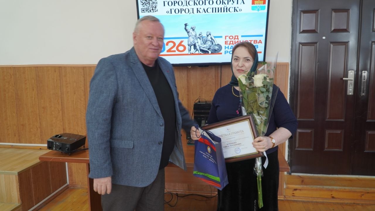Мероприятие началось с чествования заслуженных сотрудников. За вклад в развитие города почетными грамотами были отмечены начальник аппарата АТК администрации Каспийска Муртазали Муртазалиев и начальник архивного отдела Райсат Курбанова.