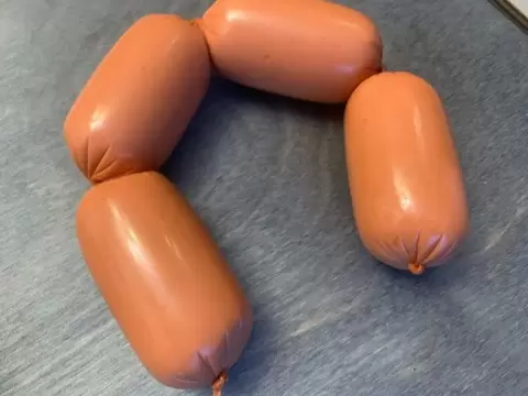 - Для начала разверните упаковку так, чтобы сосиски лежали ровно, без перекрутившихся мест.