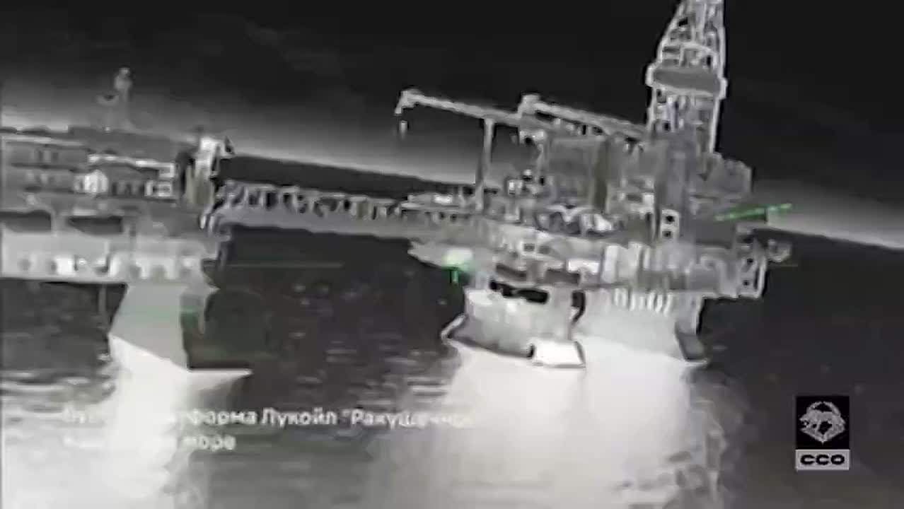 1000 км от фронта - до десяти дронов поразили две буровые установки "Лукойла", которые находятся в северной части Каспийского моря. Стоит отметить, что на объектах была защита - видны всплески воды от автоматной очереди, а также пуск ПЗРК...