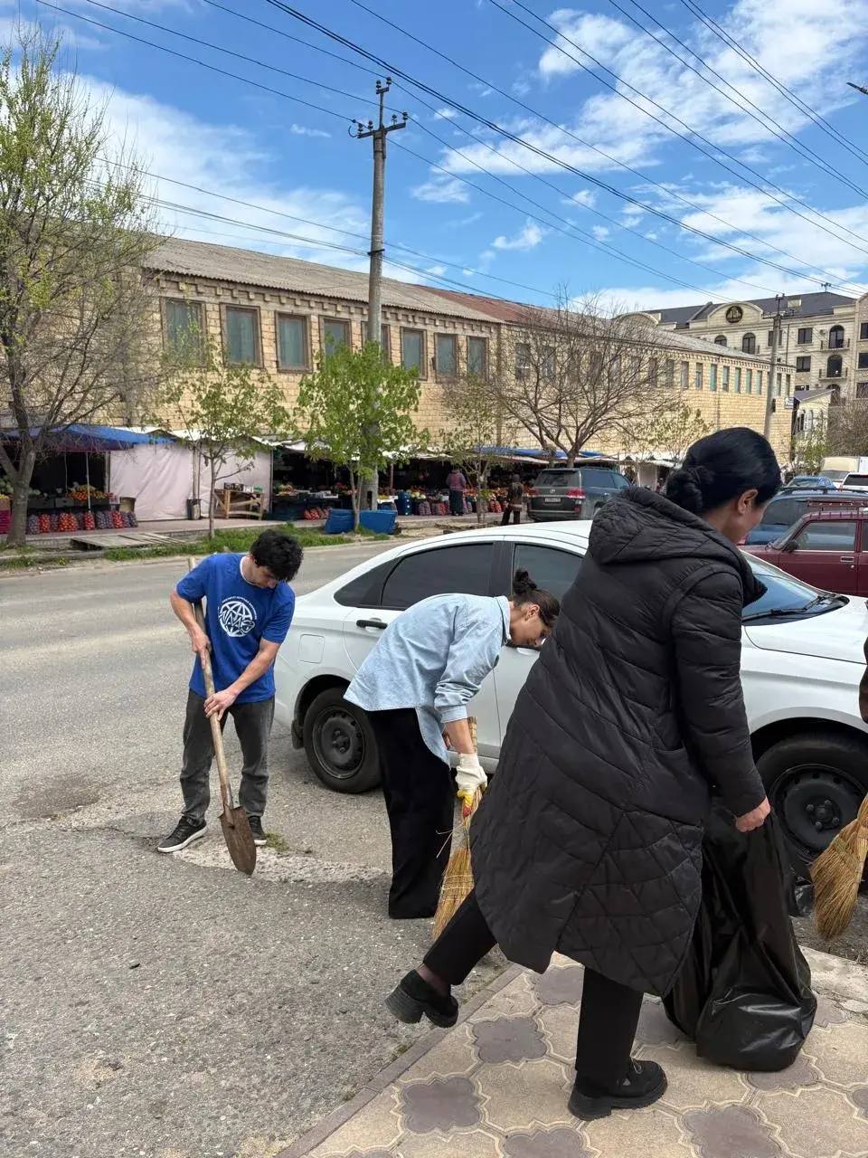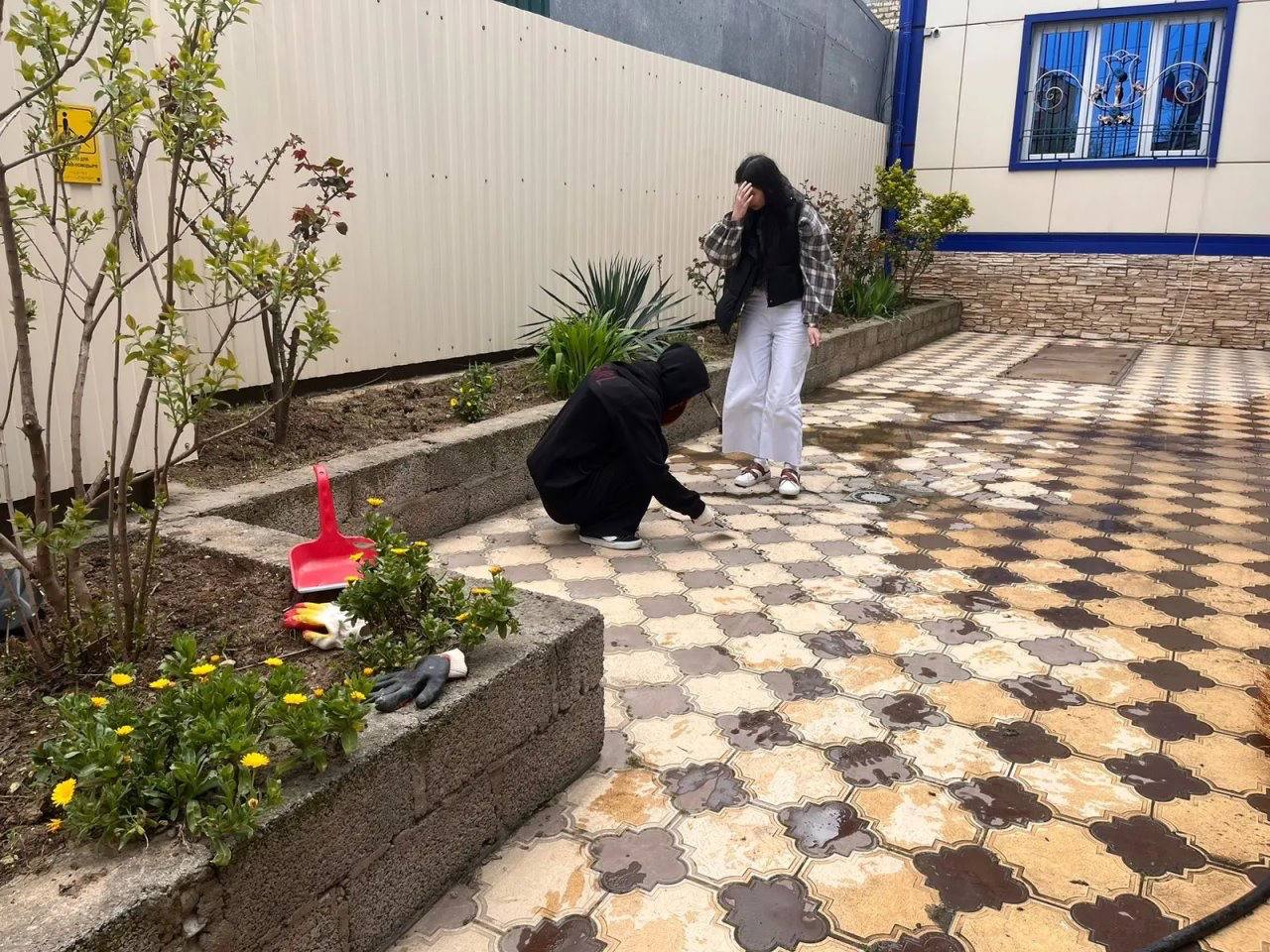 Педагоги и студенты Института Мировой экономики ,Колледж- бизнес менеджмента экономики и права приводят в порядок прилегающие территории .
