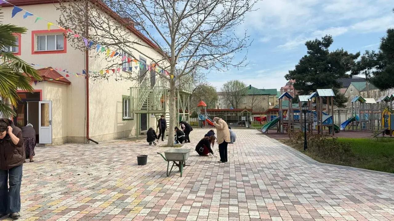 Коллективы детского сада «Орленок», «Улыбка» и спортивной школы №6 принимают участие в уборке прилегающих территорий.