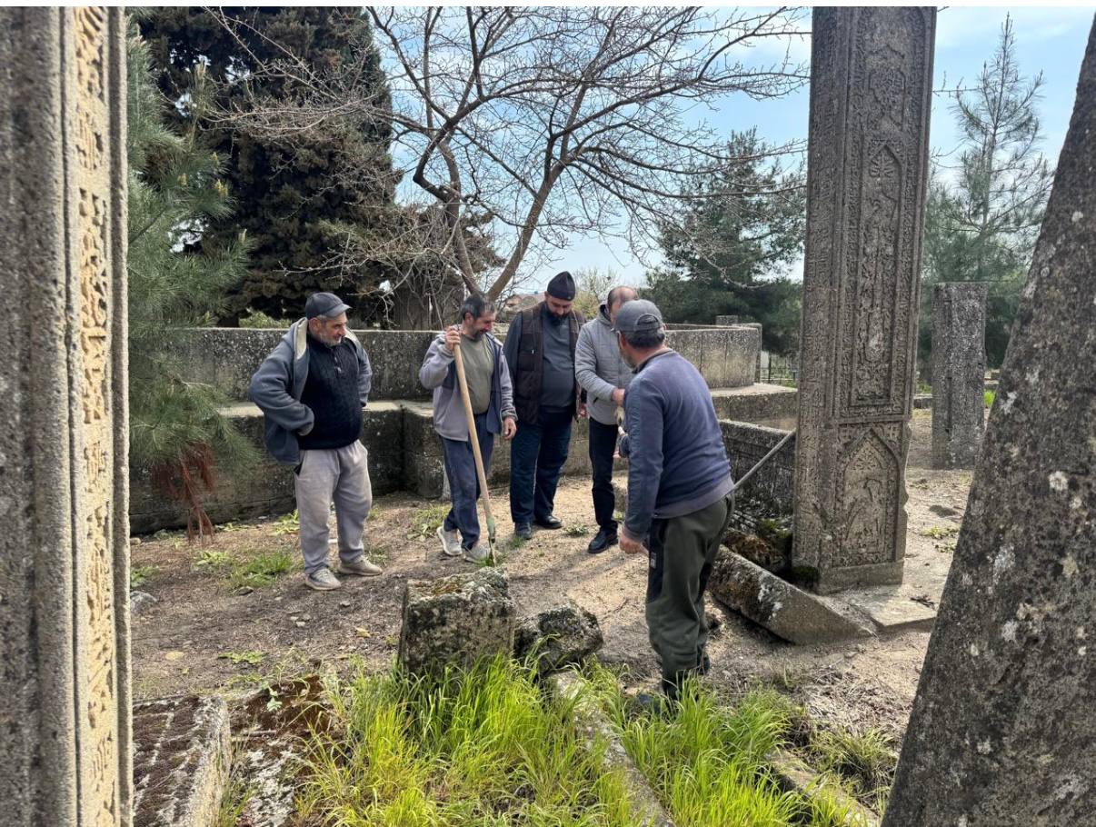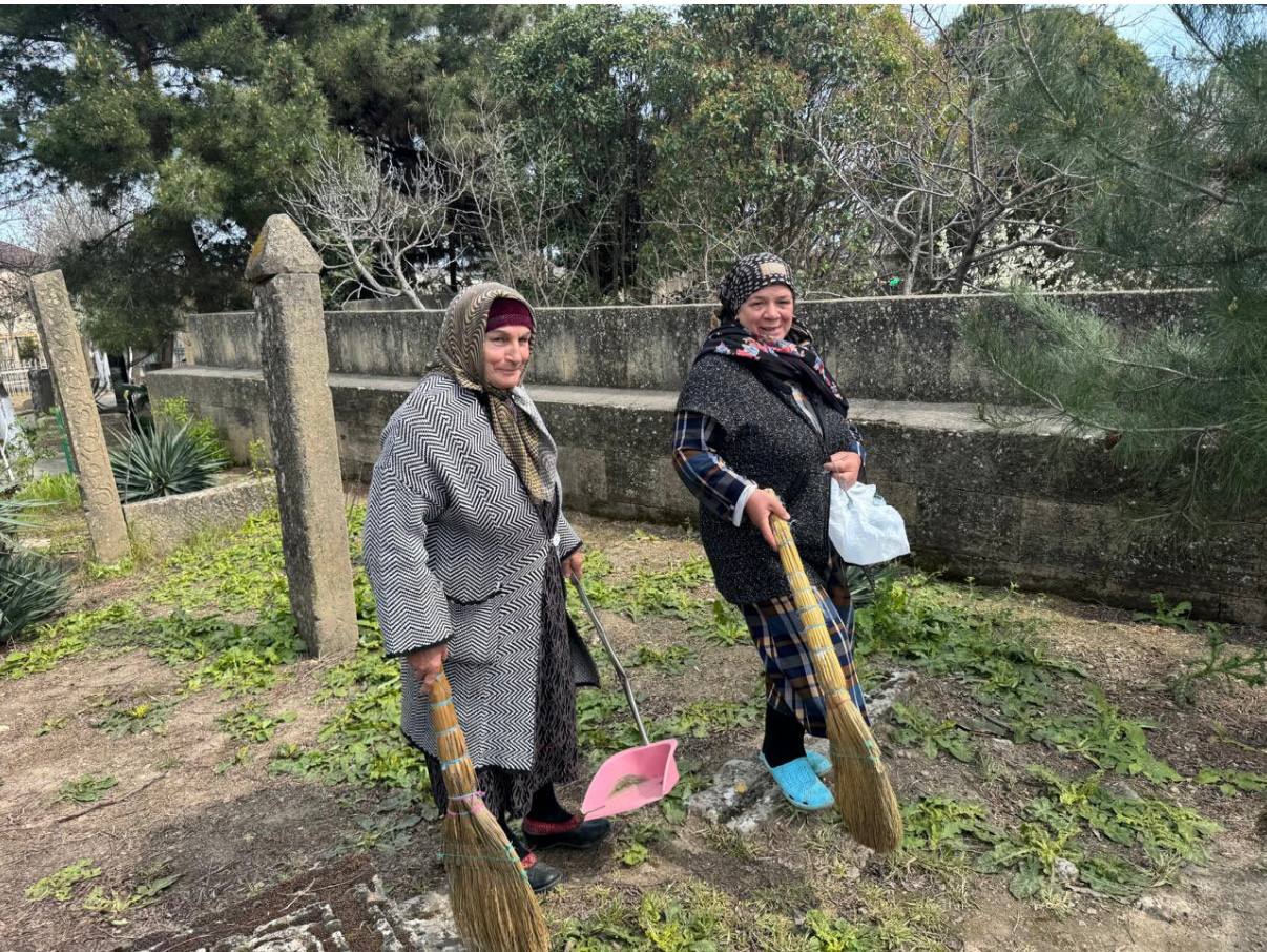 Вместе с волонтерами из религиозных организаций провели субботник на территории мусульманского кладбища прилегающей к святилищу Кырхляр и Мавзолею Дербентских ханов.