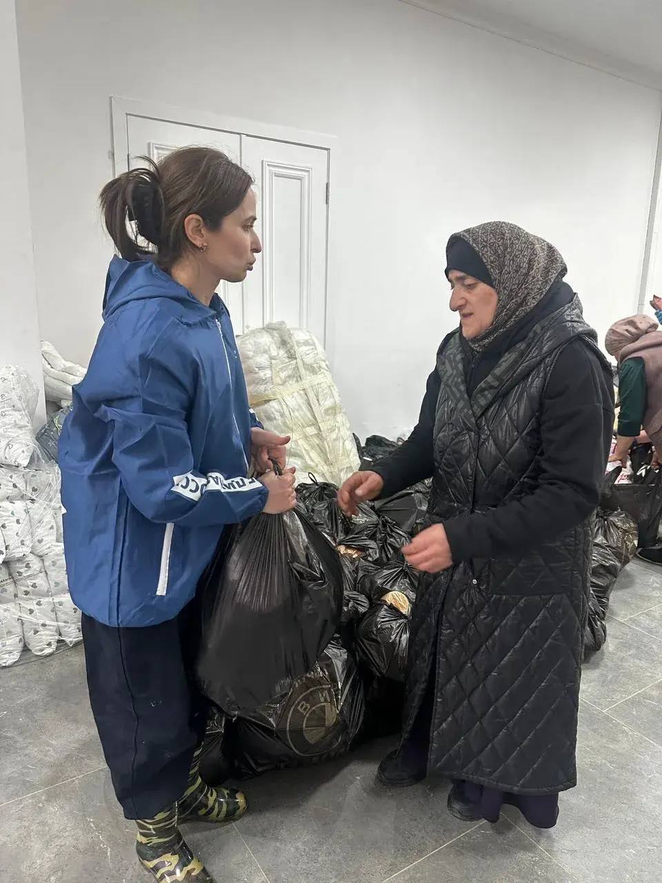 Волонтеры Единой России вместе с другими общественными и волонтерскими организациями помогают в гуманитарном центре, занимаются адресной доставкой продуктов и воды, помогают местным жителям в разборе завалов, мусора, выноса поврежденного имущества, разборе зданий и сооружений.