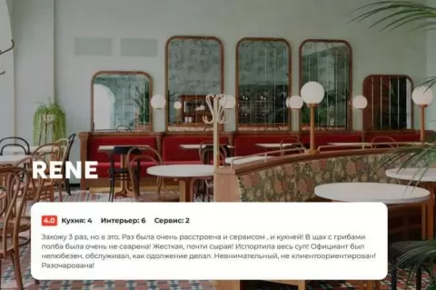 Хотя некоторые блюда, такие как карпаччо из говядины, подвергаются критике за отсутствие вкуса, общее впечатление от кухни остается позитивным. Каждый визит к Rene приносит новые кулинарные открытия.