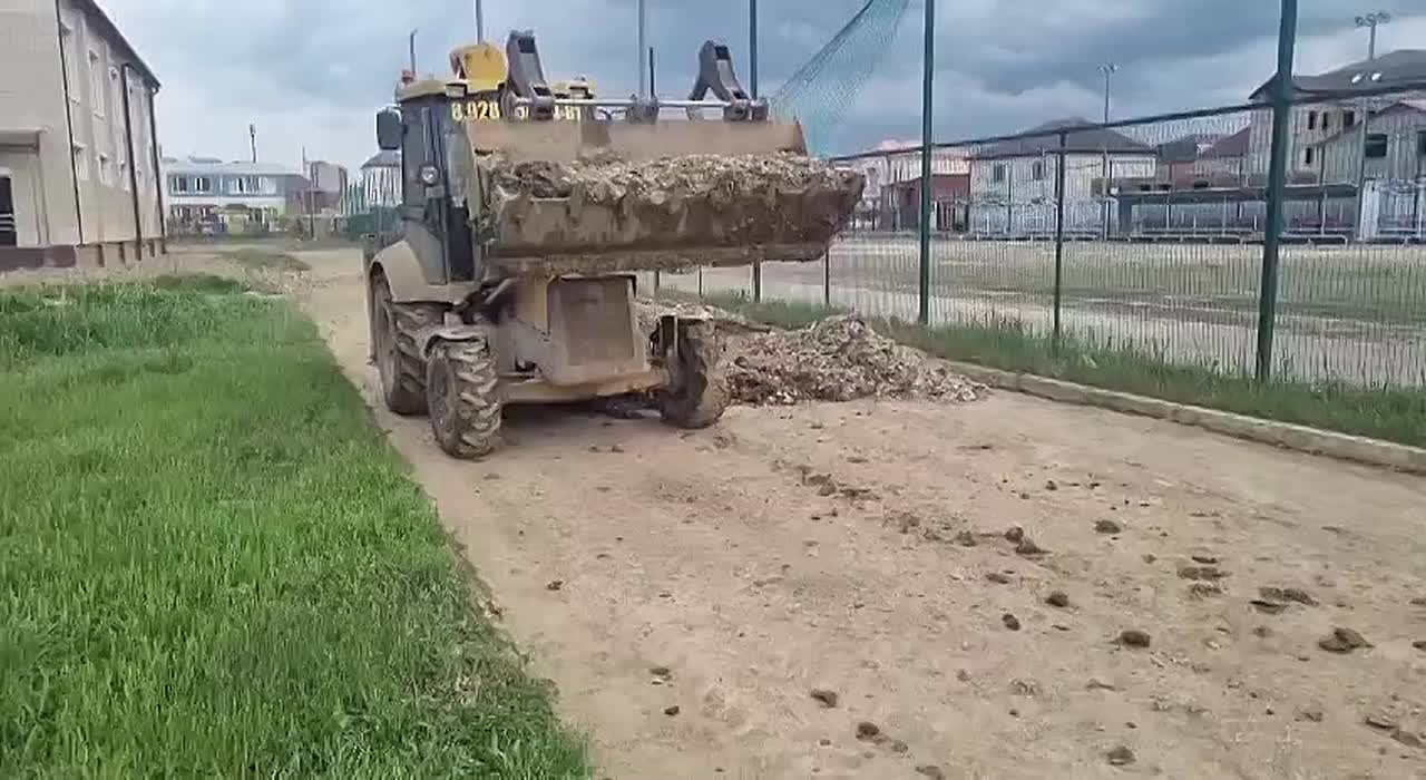 Уборка территории школы №59 после обильных дождей и паводков.