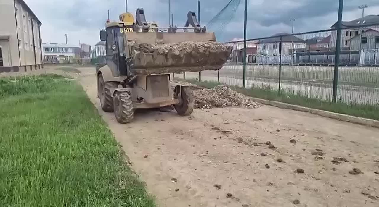 Уборка территории школы №59 после обильных дождей и паводков.