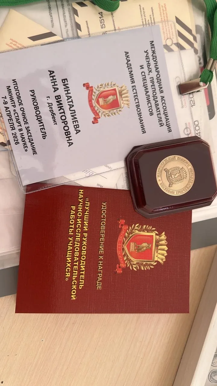 Бинаталиева Айшат, победитель конкурса, продемонстрировала высокий уровень подготовки, глубину научного мышления и уверенное владение материалом. Её достижение было отмечено не только победой, но и престижным дипломом Российской академии естествознания «Надежды российской науки» и дипломом «За лучший устный доклад».