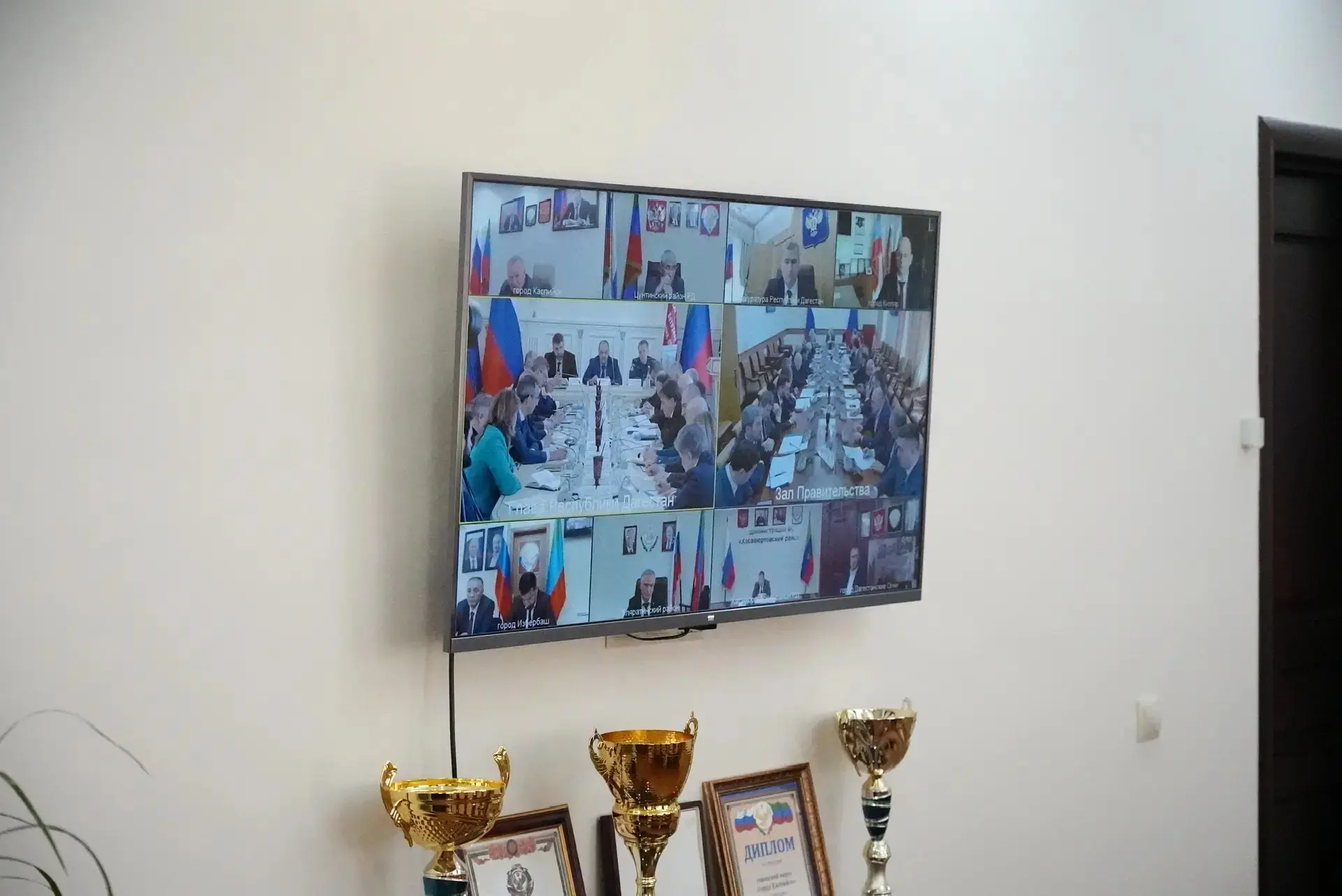 К заседанию также подключились глава города Каспийска Борис Гонцов и другие специалисты через видеоконференцсвязь.