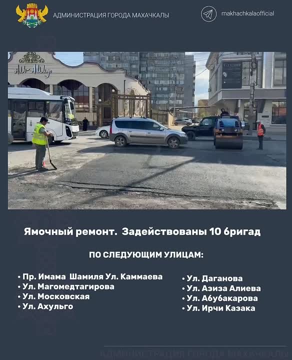 Профильные службы администрации Махачкалы проводят восстановление дорожного полотна на следующих улицах: