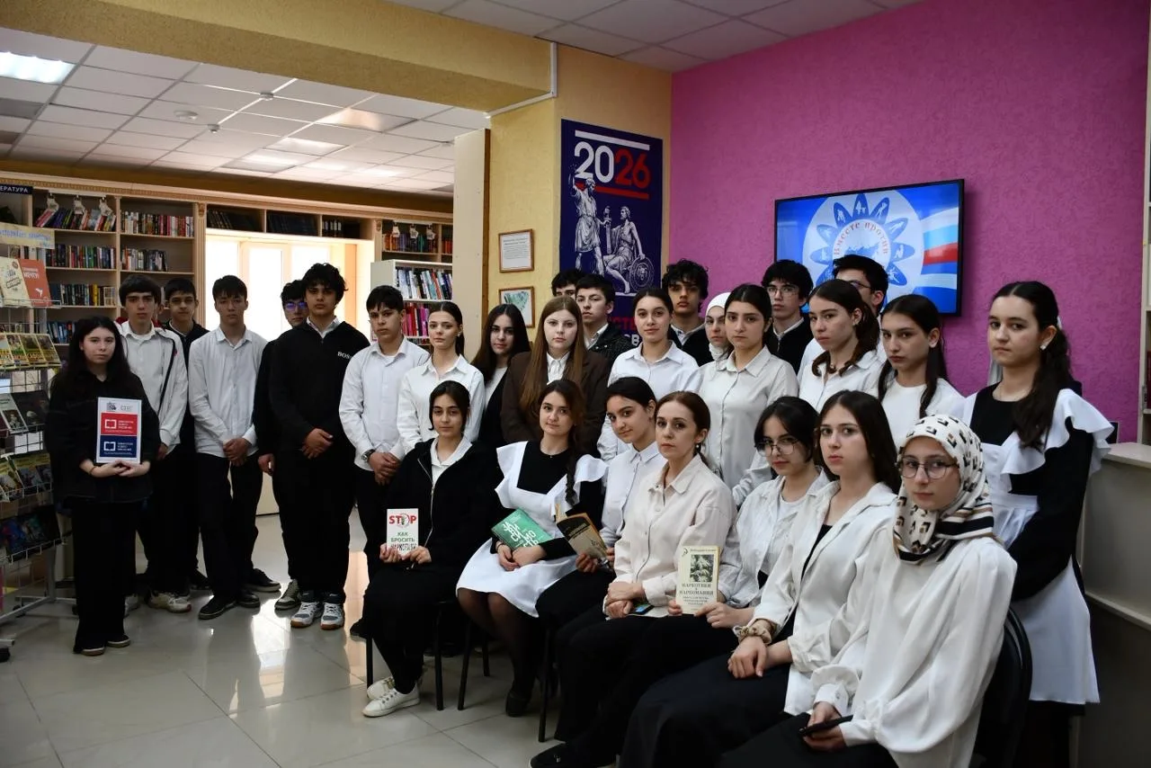 Библиотекарь Амина Джумаева рассказала о разрушительном влиянии наркотиков на организм человека. В ходе беседы были затронуты медицинские, социальные и правовые аспекты наркомании. Она подчеркнула, что минутная слабость может обернуться трагедией на всю жизнь, и важно уметь говорить «нет» сомнительным предложениям.
