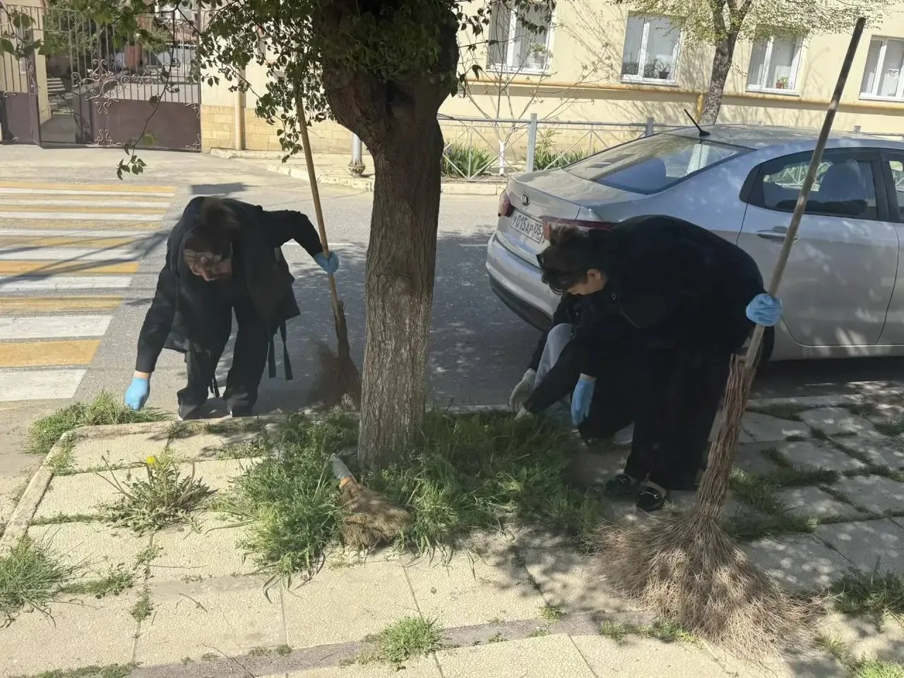 Школы города также приняли активное участие в уборке прилегающих территорий.