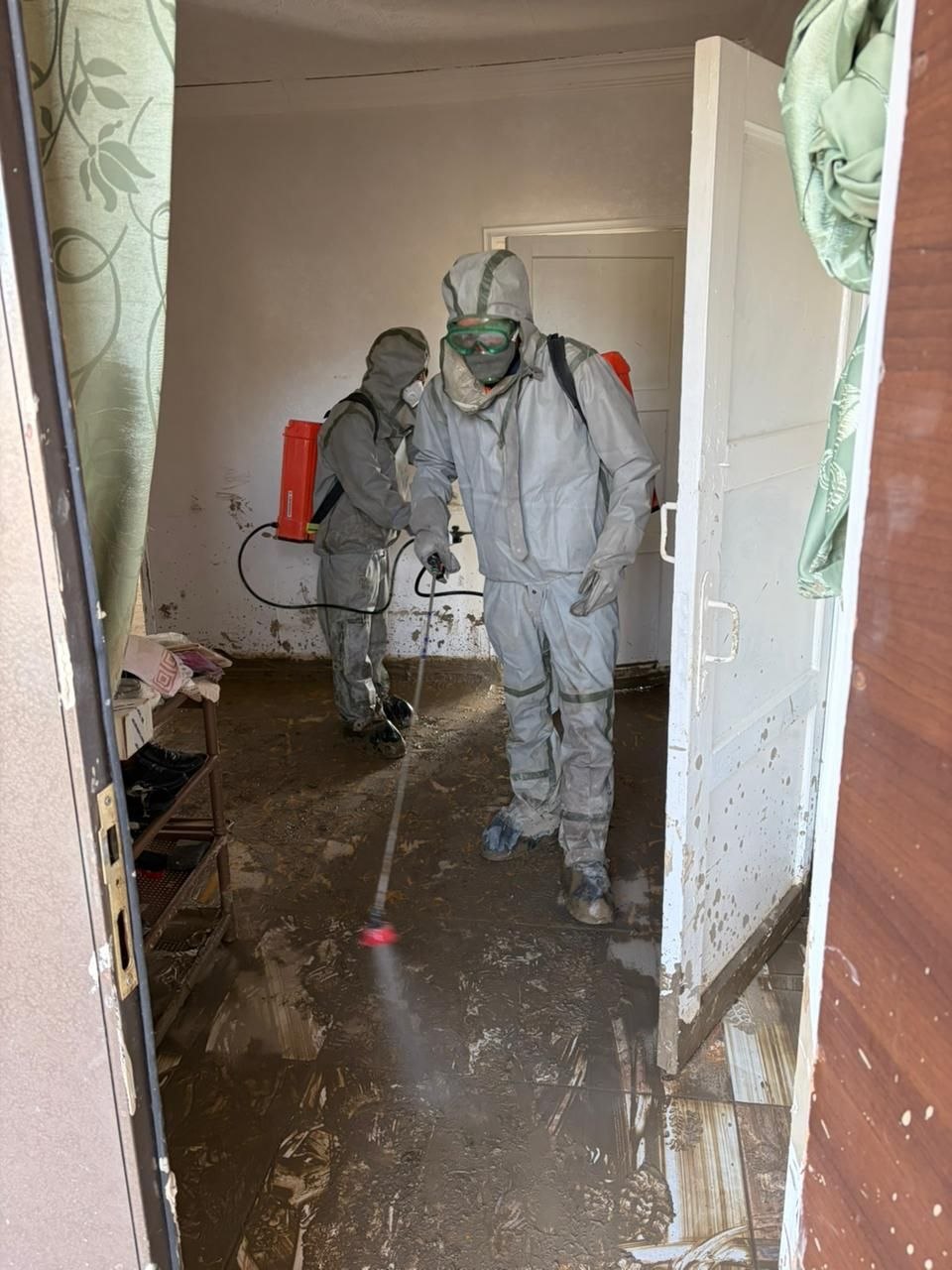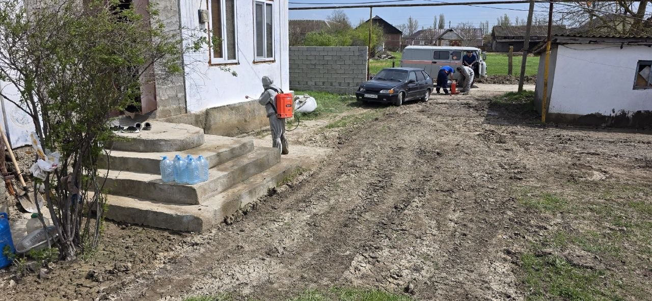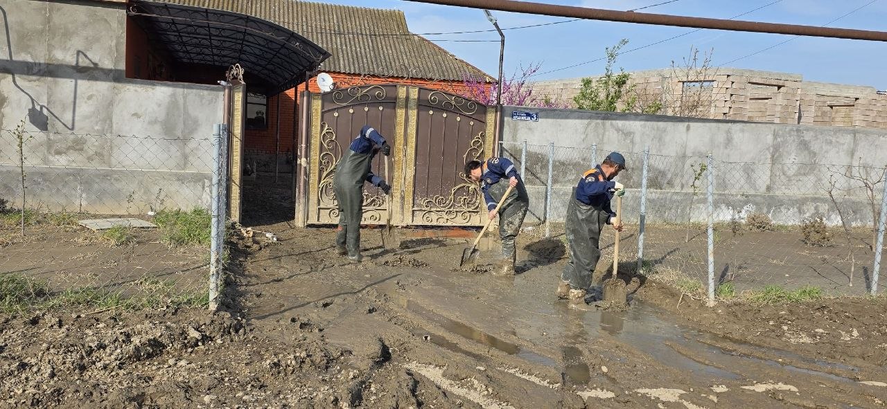 Группировкой Северного ПСО ведутся работы по адресным заявкам жителей в с. Кадыротар и Адильотар. Выполняется сбор и вывоз павших животных, очистка дворов от ила/грязи, дезинфекция.