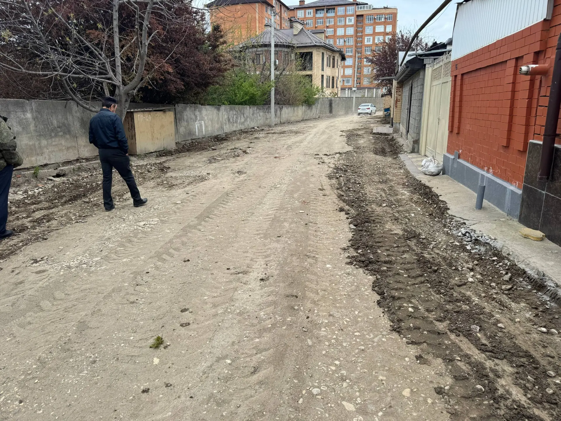 В Хасавюрте на улице 2 проезд Заречная в введутся работы по подготовке дорожного основания. Подрядчик ООО «Нарт» проводит комплекс мероприятий, предшествующих укладке асфальта.