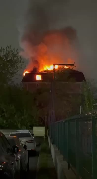 Как передает корреспондент ТАСС с места происшествия, мансардный этаж значительно поврежден огнем. Открытое пламя достигает нескольких метров в высоту, местами провалилась крыша. Вплотную к горящему зданию расположен еще один многоквартирный жилой...