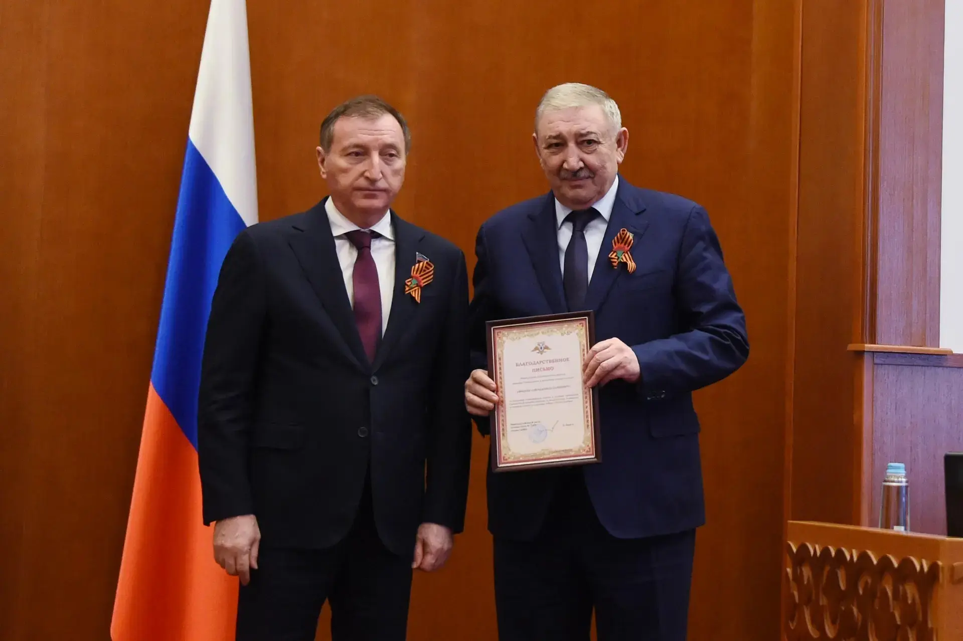 Заур Аскендеров, Председатель Народного Собрания РД, вручил заместителю Председателя Народного Собрания РД, Благодарственное письмо генерал-майора Дениса Барило,