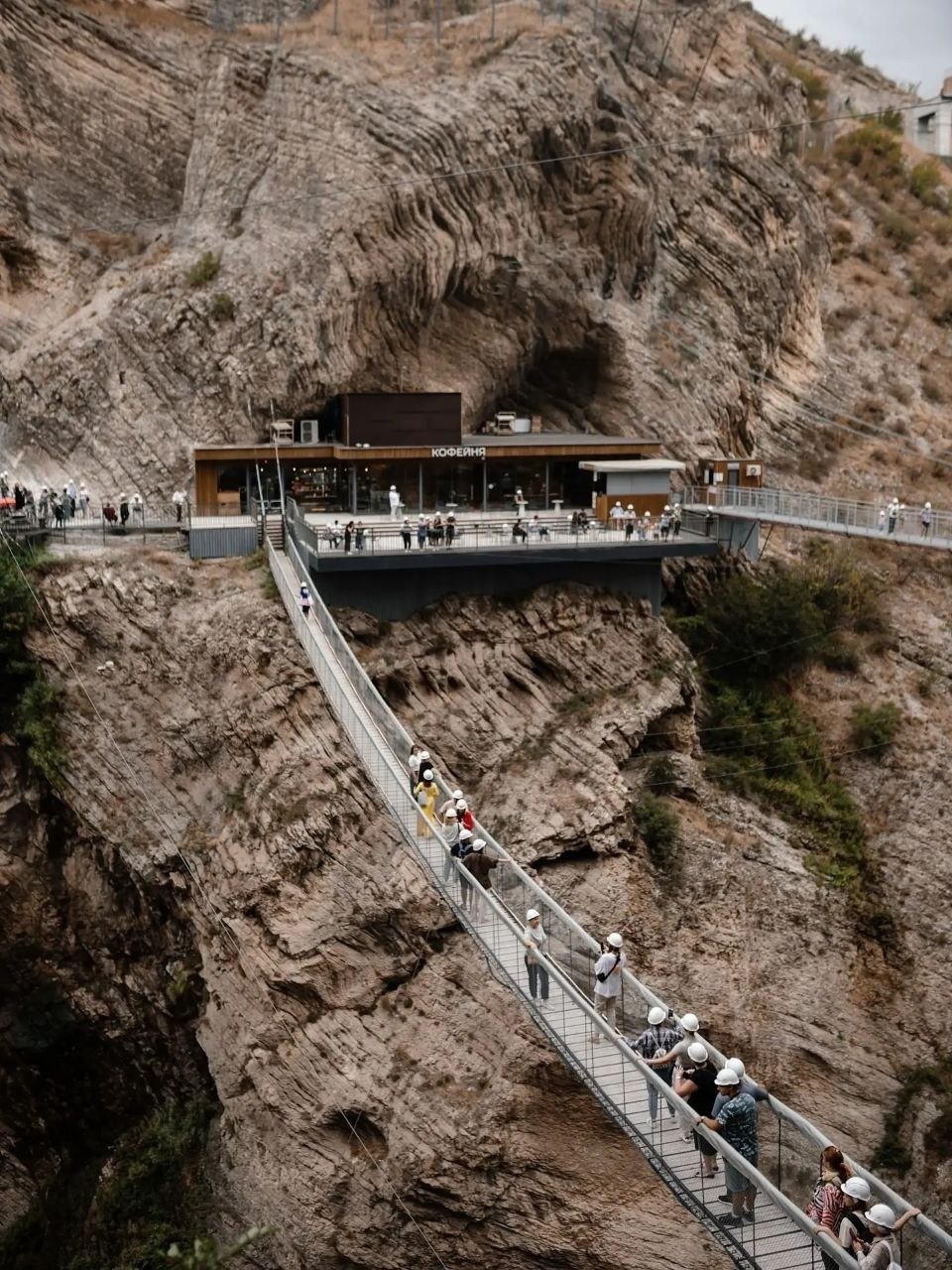 пройтись по 300-метровой экстрим-тропе, где со страховкой идёшь прямо по краю скалы (ширина всего в два шага).
