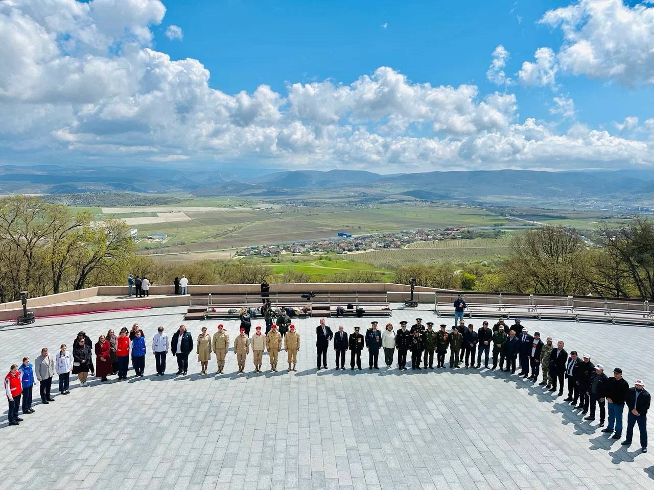 Он уточнил, что церемония развертывания большой копии Знамени Победы, алого полотна штурмового флага 150-й стрелковой дивизии, прошла на Сапун-горе. Здесь же установили стенды с изделиями дагестанских мастеров.