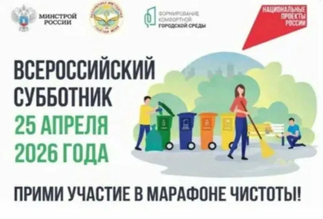 Приглашаем всех жителей города принять участие в масштабном Всероссийском субботнике, который состоится 25 апреля!