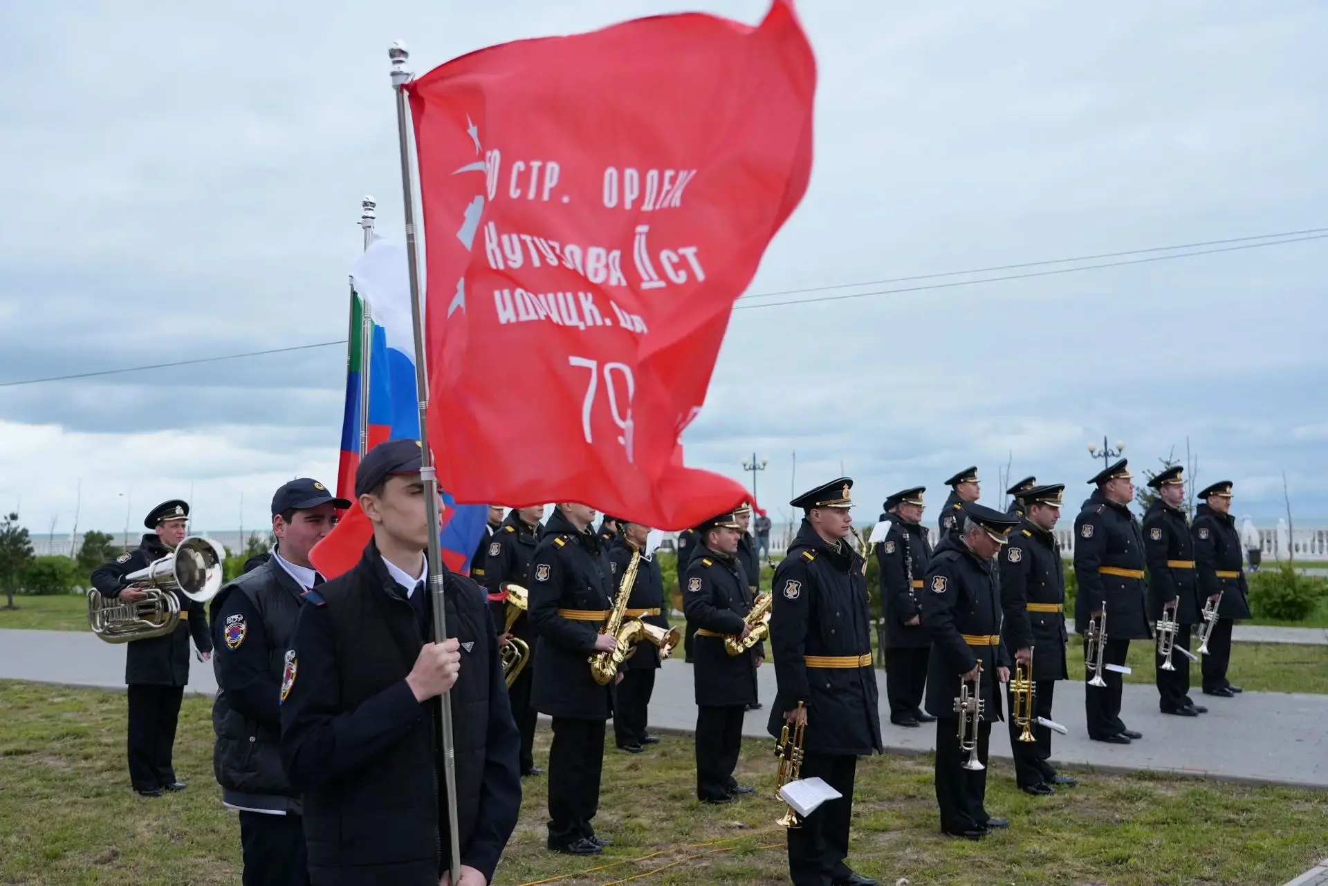 В Каспийске прошло торжественное мероприятие в рамках акции "Знамя победы", собравшее множество участников и гостей. В числе присутствующих были Глава города Борис Гонцов, военный комиссар Марат Пашаев, участники специальной военной операции, военнослужащие, а также представители общественных организаций, таких как ДРОО «Память Гор», «Боевое Братство», Совет Старейшин и др.