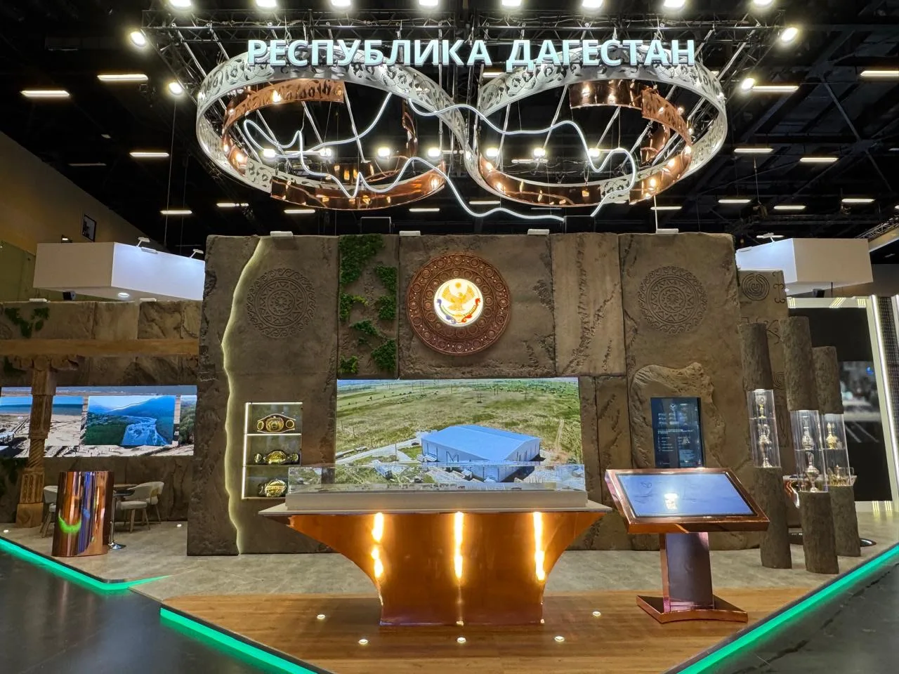 Свою продукцию представят предприятия промышленности и народные ремесленники. Всё пространство объединит подвесной арт-объект как символ вечности через сочетание культурных элементов и новых идей.