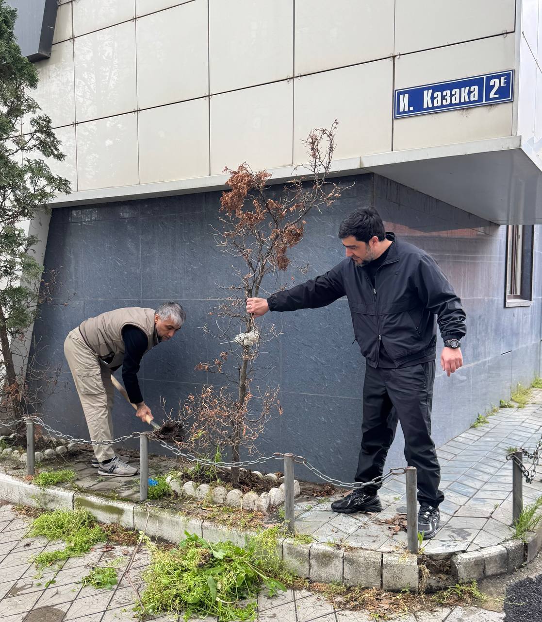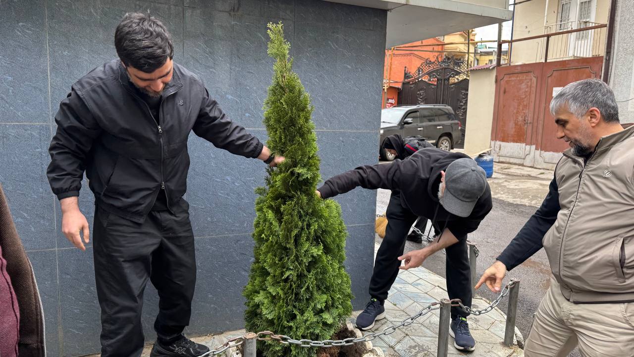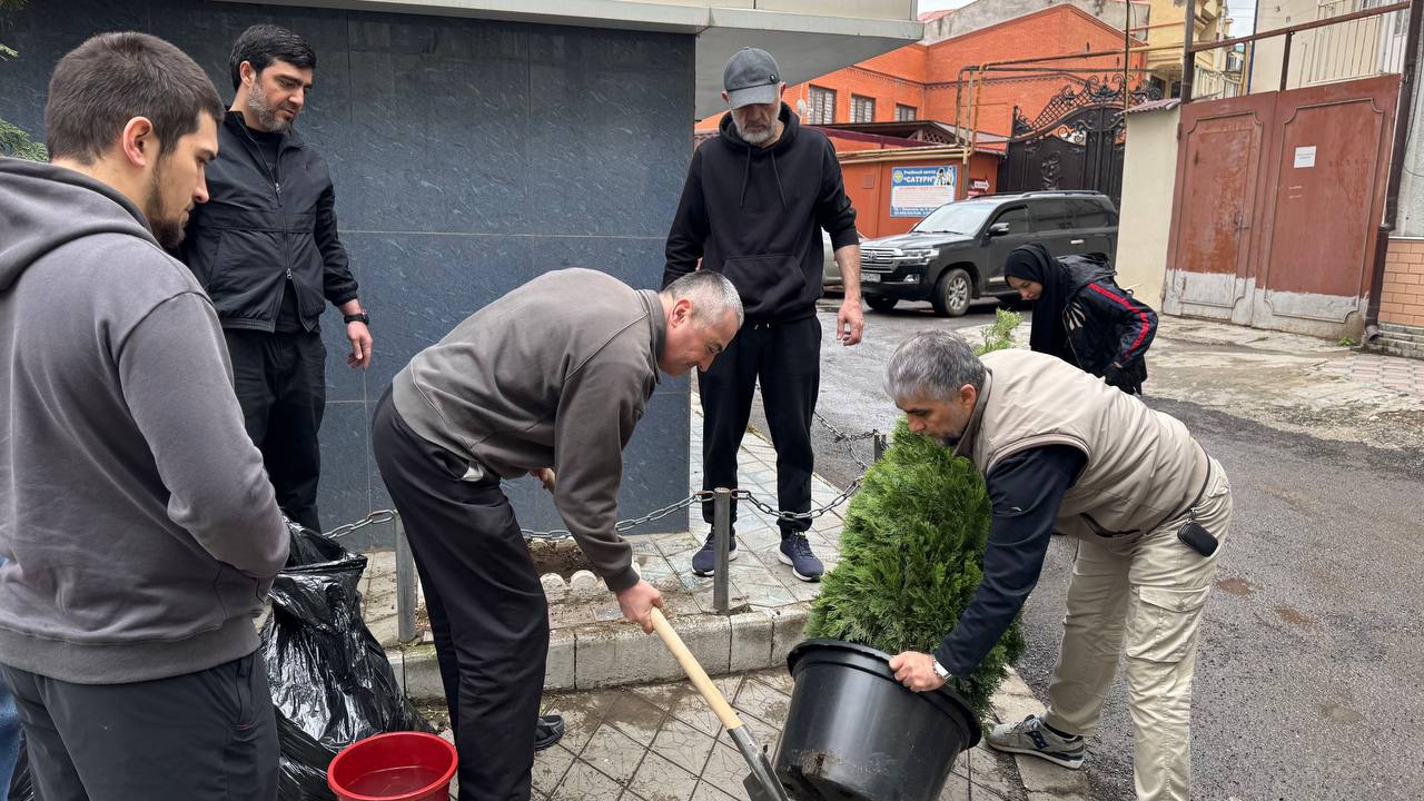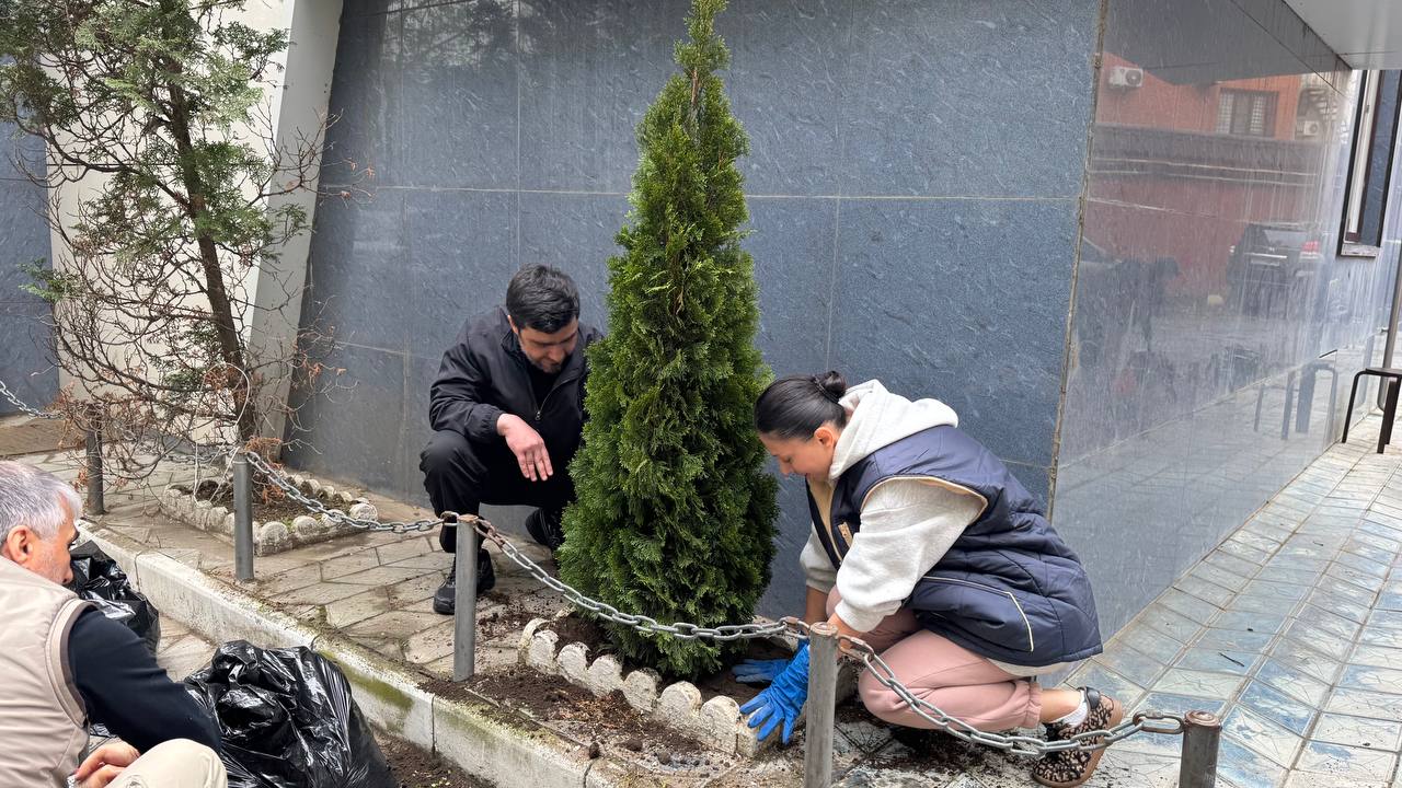 В рамках мероприятия коллектив привёл в порядок территорию вокруг своего здания: провели уборку, помыли фасад и высадили тую, благоустроив прилегающую зону.
