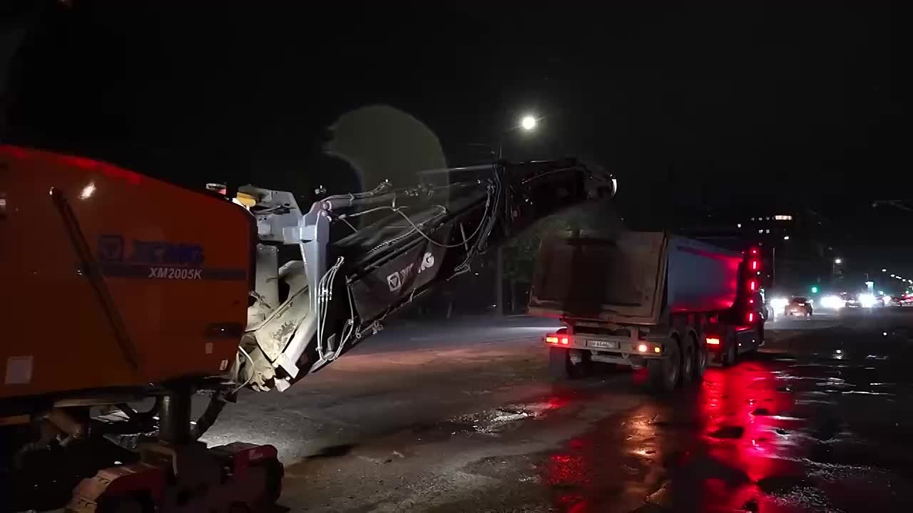 Работы идет в основном ночью, чтобы свести к минимуму неудобства для горожан.