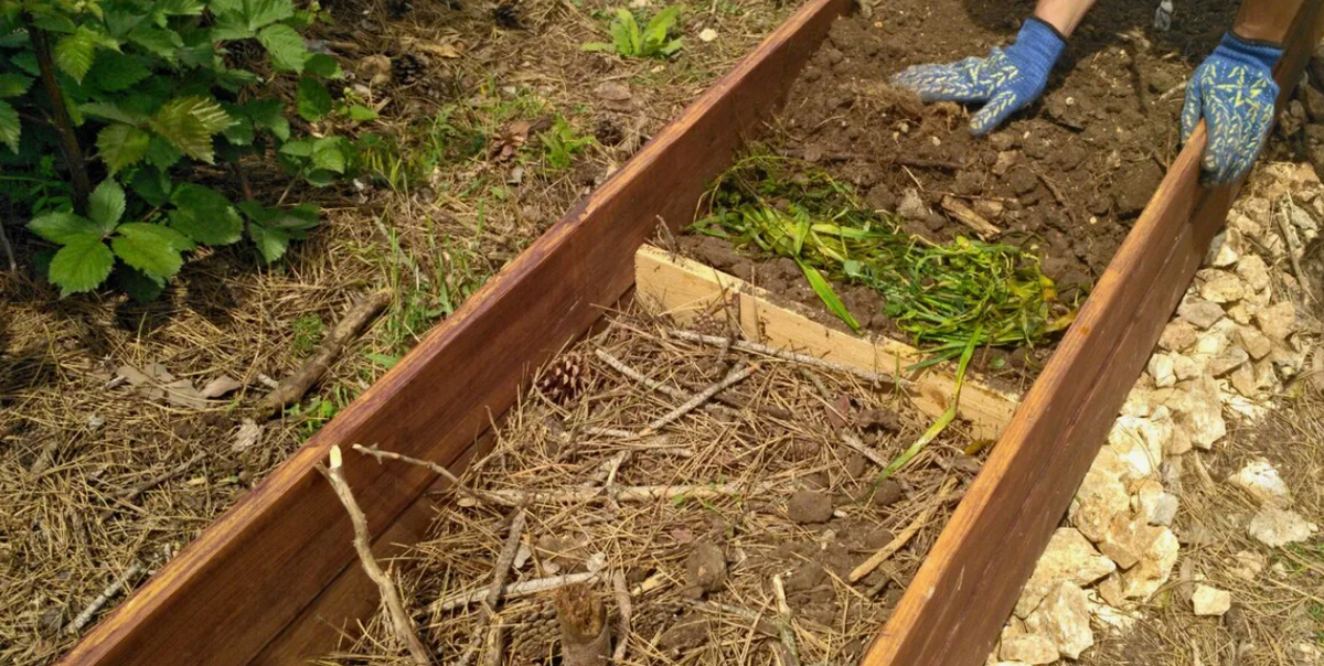 На завершающем этапе укладывается самый качественный грунт толщиной около 20 см, в который весной будут высеваться семена. Для ускорения процессов можно использовать древесную золу и солому, которые обогатят почву и нормализуют кислотность.