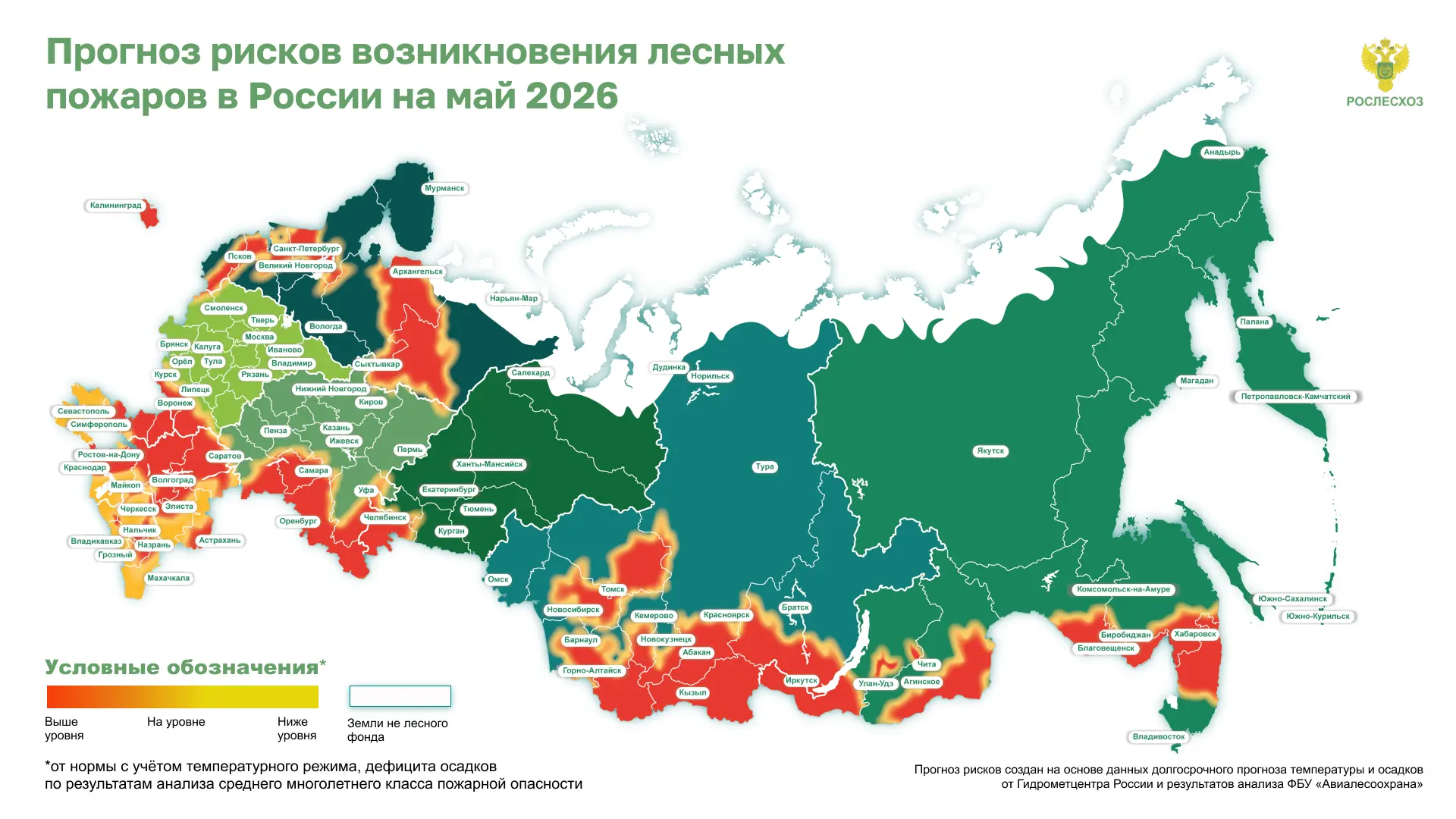 Прогноз разработан на основе данных Гидрометцентра России и многолетних данных ФБУ «Авиалесоохрана» о горимости лесов.