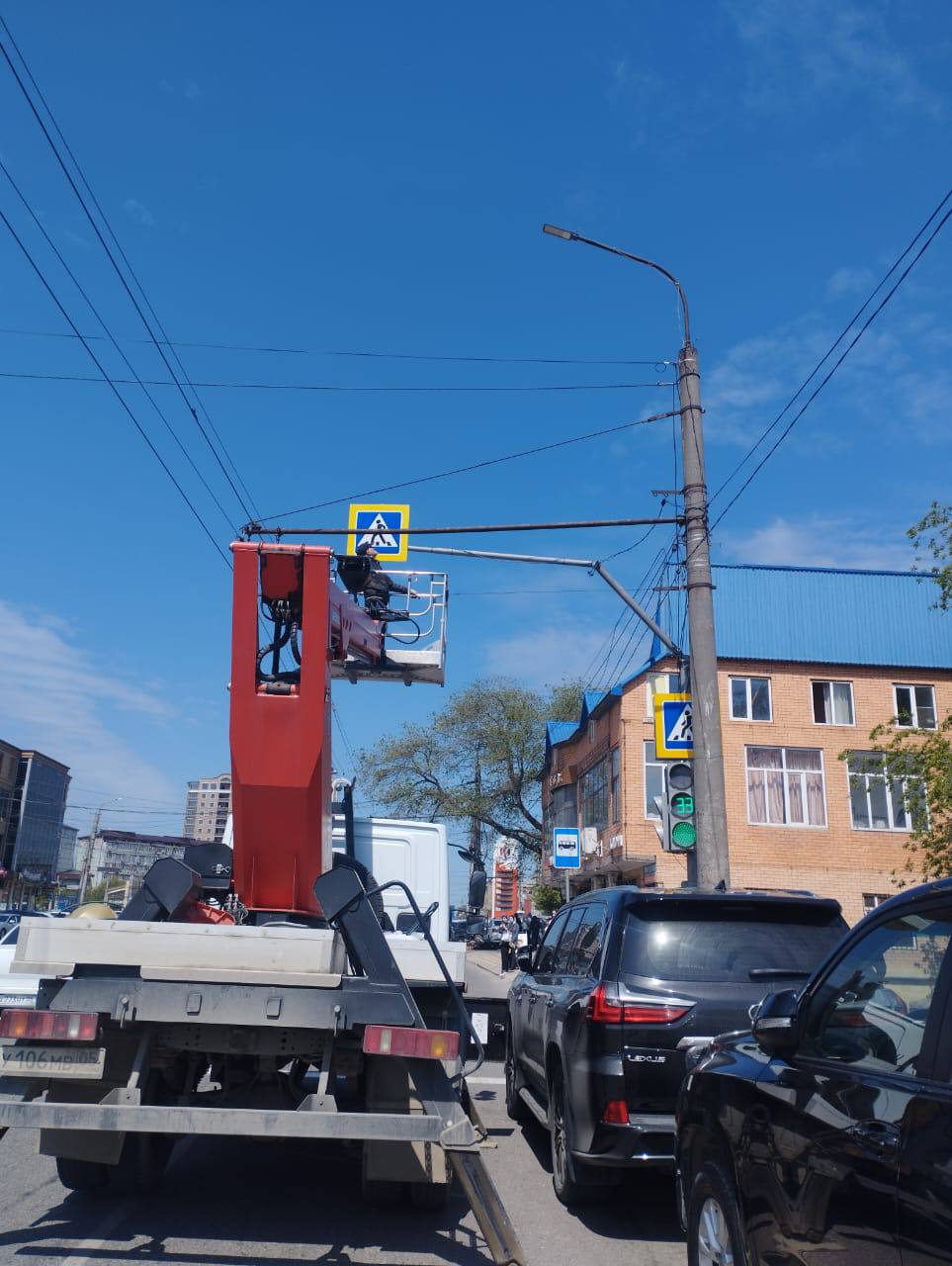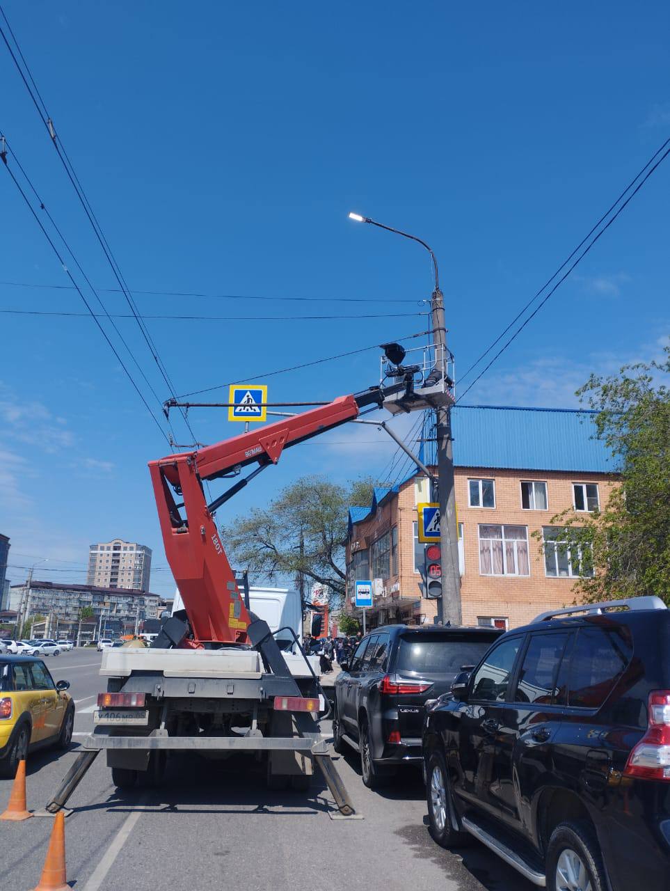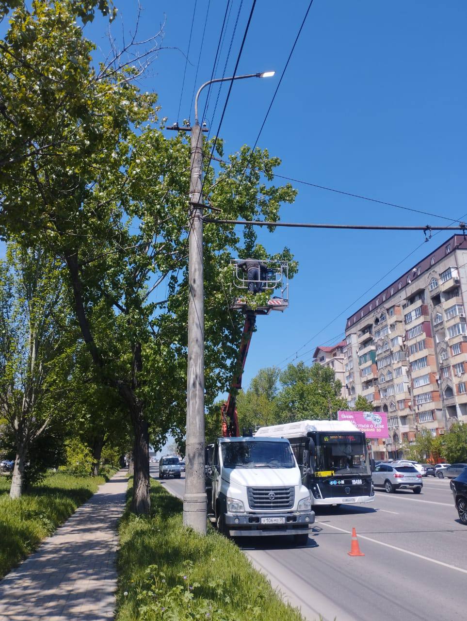 Специалисты МБУ «Благоустройство» ведут работы по замене светильников на пр. И. Шамиля.