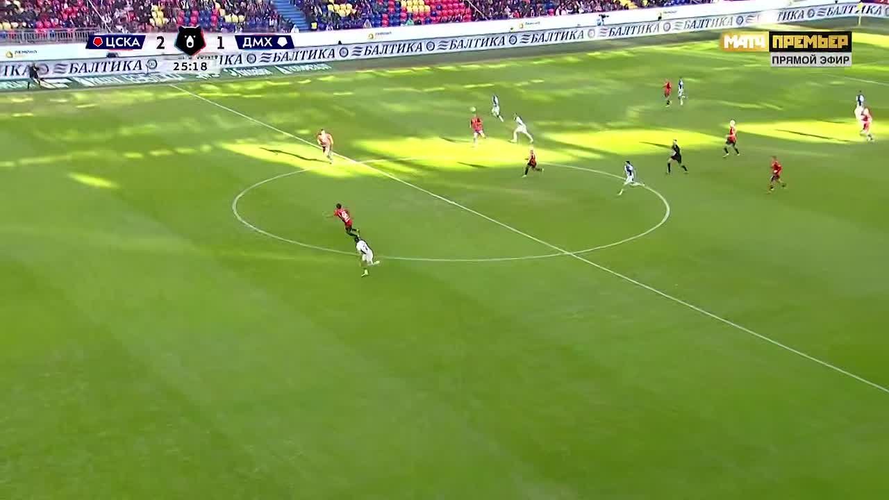 ЦСКА после первого тайма выигрывает у «Динамо» со счетом 2:1.