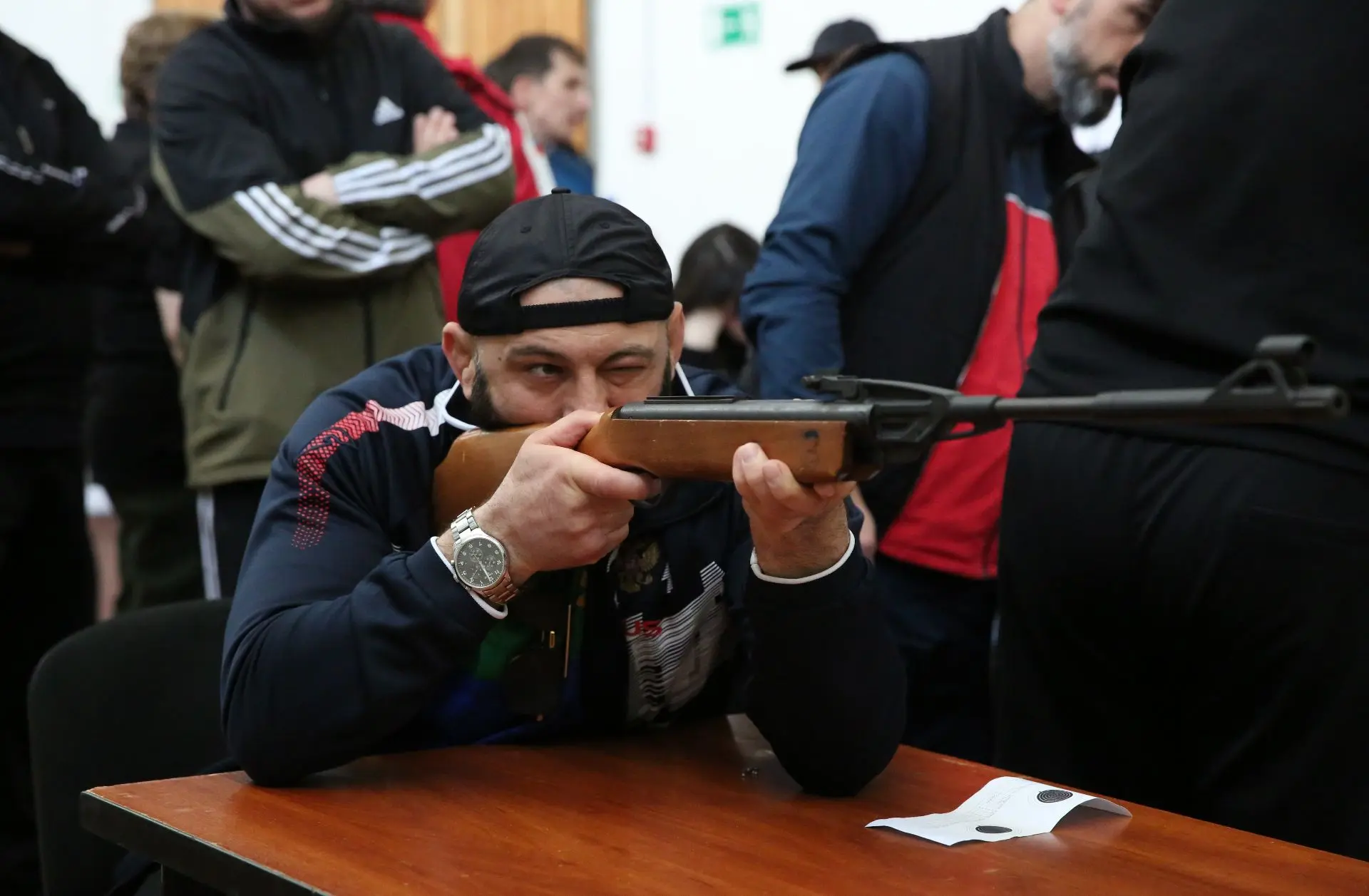 Представители трудовых коллективов выполняют нормативы комплекса ГТО на выносливость, гибкость, силу, а также демонстрируют точность в стрельбе из пневматической винтовки.